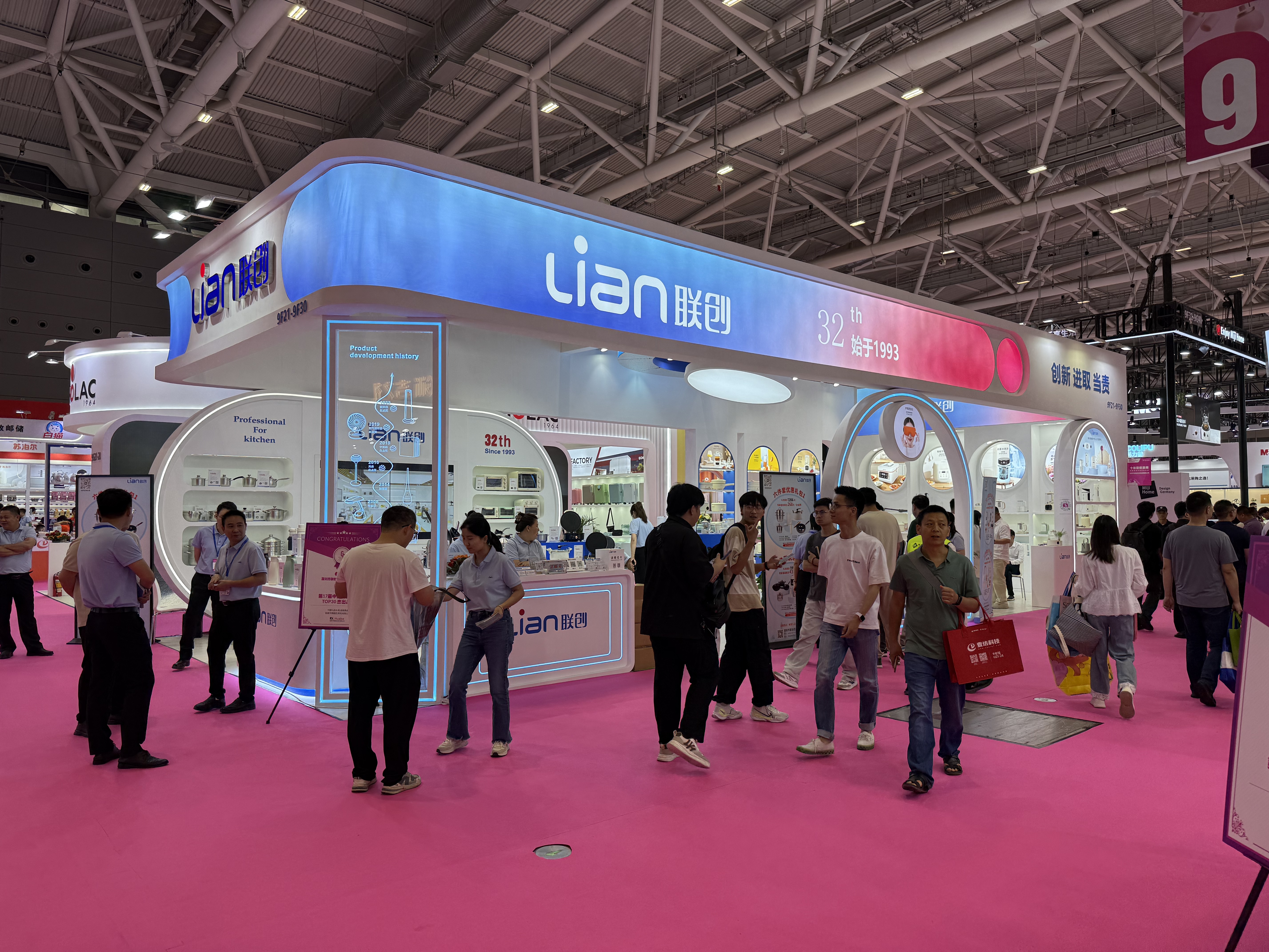 4月25日,第33屆深圳國際禮品家居展在深圳國際會展中心開幕。聯創科技集團旗下聯創三明、聯創百業攜智能家電全品類產品參展(展位號:9號館9F21-9F30),通過場景化展陳與功能演示,集中展示廚房健康、環境家電、保健按摩等領域的創新成果,首日接待禮品客戶駐足洽談超800人次,達成意向合作客戶23家。