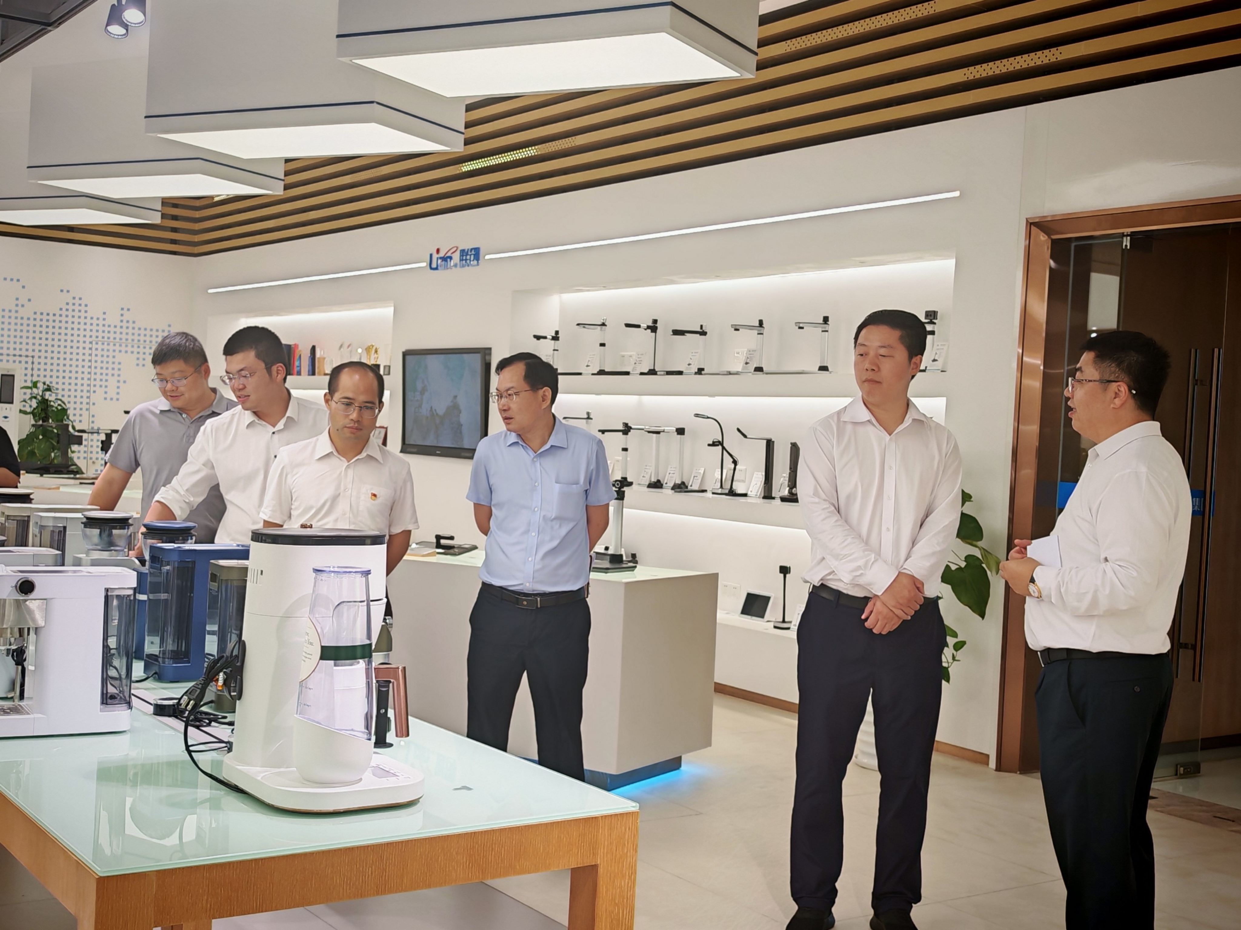隨后,雙方在座談室進行了深入交流。趙冰冰署長首先介紹了此次調研的目的和意義,重點闡述了龍崗區對人工智能產業的高度重視以及區人工智能署在推動產業發展方面的各項舉措。他表示,區署將致力于為企業提供全方位的政策解答、精準服務與專業指導,積極營造良好的產業生態和發展環境,全力支持像聯創科技集團這樣深耕智能小家電領域企業和產業園智能打造,引入人工智能應用,共同推動龍崗區人工智能產業高質量發展。