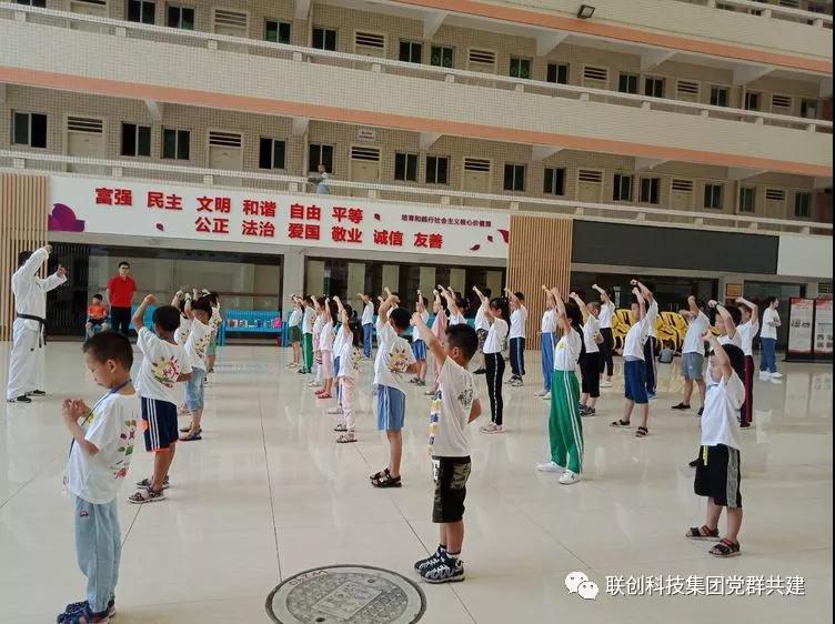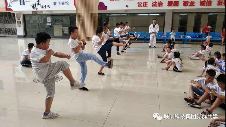 早上孩子們陸陸續續的來到了聯創科技園區內,熱情的與老師打著招呼。等待著孩子們的將會是揮灑汗水的一個上午,我們將開始跆拳道的基礎練習。所謂跆拳道是現代奧運會正式比賽項目之一,是一種主要使用手及腳進行格斗或對抗的運動。